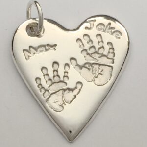 We need a hand or foot print (or paw if you want to get your pet's imprint done). Ideally this is done by us in the studio using our special reactive paper. However, it doesn't have to be, prints for silver jewellery can be taken from virtually any media. Bring them along or email them to us and we will let you know if it can be used.