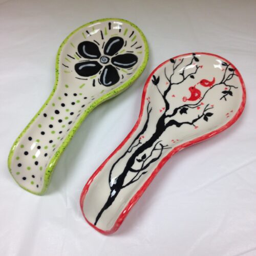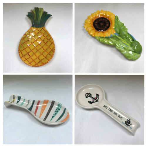 In this post we want to highlight the very useful spoon rest. That interesting dish that sits on the worktop and dutifully holds onto the spoons whilst you are busy mixing and stirring. We have several sizes and shapes and the design possibilities are endless. Choose colours that fit with your kitchen or go bold and stylised that choice is yours.