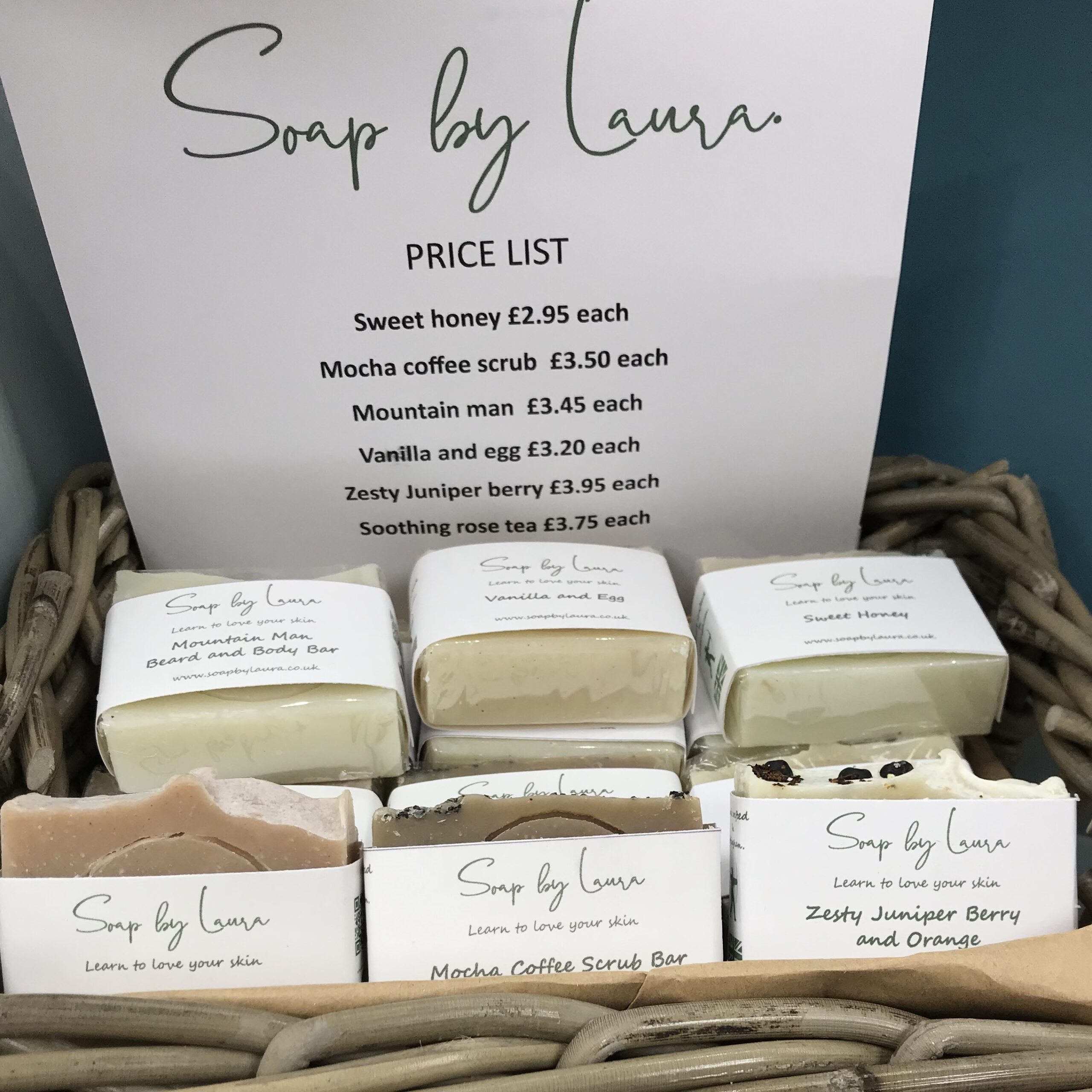 We have been very fortunate to take delivery of a deliciously fragrant selection of hand made soap by Laura. Great combinations of fragrance mean there is something for everyone from Vanilla and Egg to Zesty Juniper Berry with Orange.