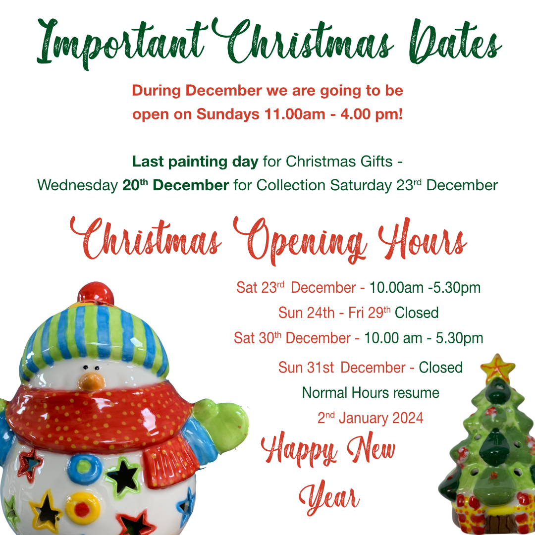 Also please don't leave it till the last minute to paint your Christmas gifts, be prepared and book in soon!